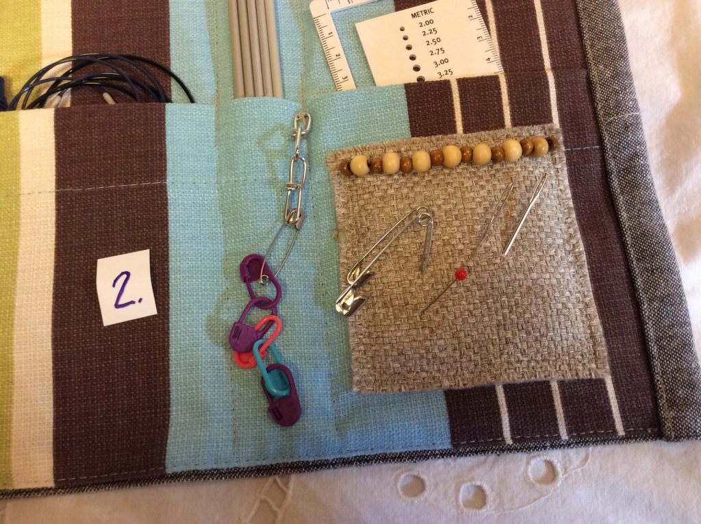 Harmaa puikkokotelo, nro 2 Puikkokotelot Hinta 39 euroa Korkeus 31 cm, leveys auki 52 cm ja kiinni 20 cm 20 puikkotaskua Neulatyyny