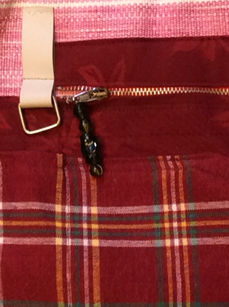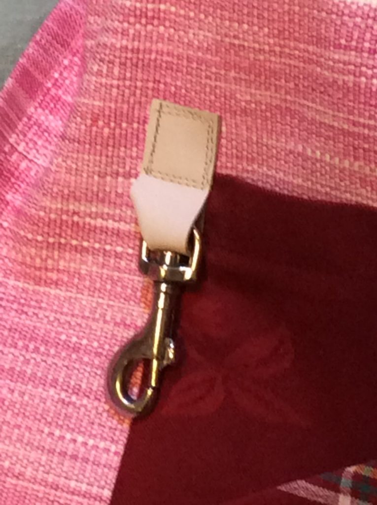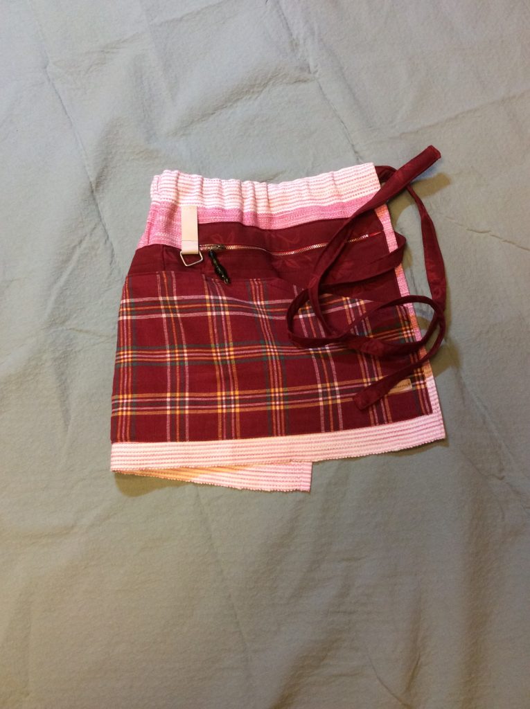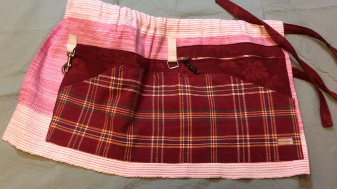 Vaaleanpunaraitainen esiliina, nro 6 Puutarhaesiliinat, vyölaukut ja hatut Hinta 29 euroa 3 taskua, 1 vetoketjutasku ja 1 kynätasku. Puuvillaa, Pesu 40 astetta. Essun korkeus 37 cm ja leveys63 cm. Vetoketjutasku